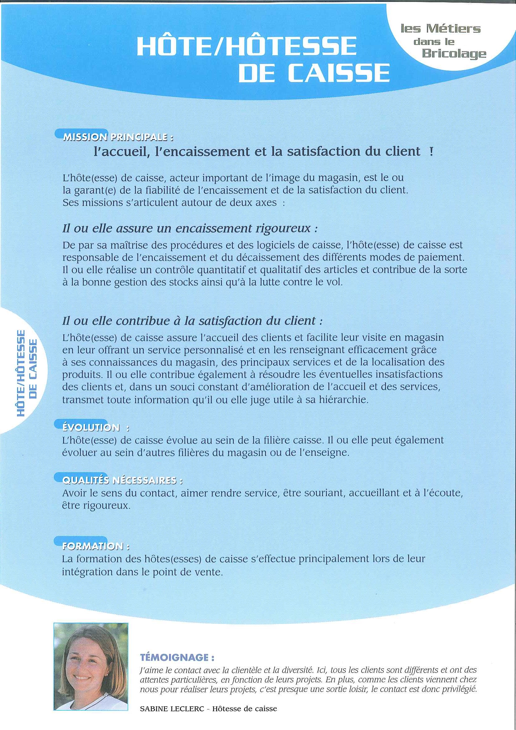 Fiche métier hôte(sse) de caisse